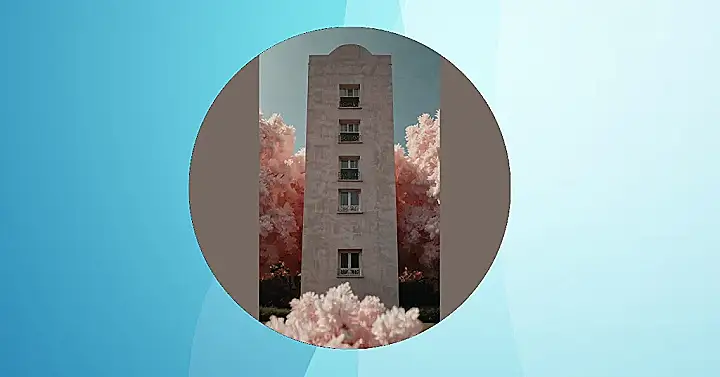 This building looks like it belongs in a fairytale! Imagine a beautiful princess living here, surrounded by fluffy pink clouds that look suspiciously like cherry blossoms. It’s the perfect aesthetic wallpaper background – dreamy, pretty, and totally Instagram-worthy. You could almost hear her giggling from behind those windows, right? It’s like something out of a sweet dream, all pastel and perfectly peaceful.
