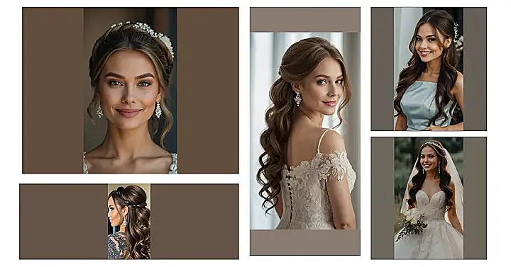 This look is elegant without being too extra, if you know what I mean. You get to keep your hair down, which is always a win, but it’s still got that “I spent hours getting ready” vibe. Plus, think about how amazing this will look in photos! Just practice your “effortless” hair flip beforehand – you know, the one that says, “Oh, this old thing? It just magically became perfect.” Good luck and enjoy your special day!