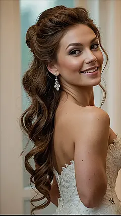 This hairstyle is perfect if you’re a bridesmaid who wants to look amazing without spending hours in the salon! It’s all about gorgeous, loose curls that bounce and shine. Imagine yourself twirling on the dance floor ‚Äì this hair will totally move with you, looking effortlessly chic. Plus, that little braid at the top adds a touch of elegance, like a secret sparkly tiara just for you. No complicated updos, just beautiful, bouncy curls that are easy to manage and make you feel like a queen.