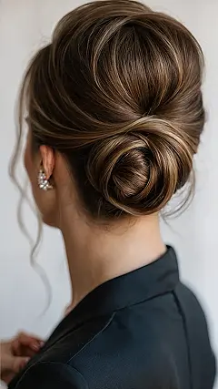 Who knew hair could look so effortlessly elegant while still being totally ready to party? This soft French twist is basically the VIP pass for your locks on a big day. Just check out those beautiful strands, perfectly swirled and tucked, showing off a gorgeous mix of browns and highlights without a single hair looking stressed. It’s not a tight, pull-your-face-back kind of updo; it’s got that cool, relaxed vibe that says, “Yes, I’m at a wedding, but also, my hair feels amazing and could probably survive a minor earthquake.”