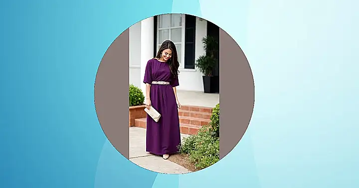 Stepping out in this gorgeous purple maxi dress, you’re basically giving off major “I woke up like this and effortlessly look amazing” vibes. This outfit is seriously a genius move for a wedding guest because it screams, “I’m here to celebrate the happy couple, enjoy ALL the appetizers, and definitely not worry about a sudden gust of wind causing a fashion disaster.” The comfy, flowy fabric means you can bust a move on the dance floor, hug Aunt Carol twice, and still feel totally at ease, especially with that sparkly belt adding just the right amount of ‘wow’ factor without stealing the spotlight from the bride.