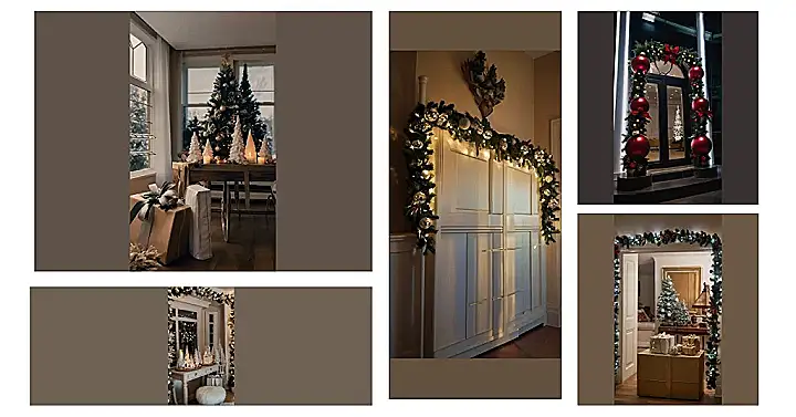 This picture really shows how easy it is to add some major Christmas cheer with simple indoor decorations. A little garland goes a long way – it instantly transforms a plain doorway into a winter wonderland. Plus, those presents, even just sitting there, create a feeling of excitement and holiday magic. It’s proof you don’t need a giant, over-the-top tree to have a memorable Christmas. Sometimes, the smaller details – like a beautifully wrapped gift – make the biggest impact!