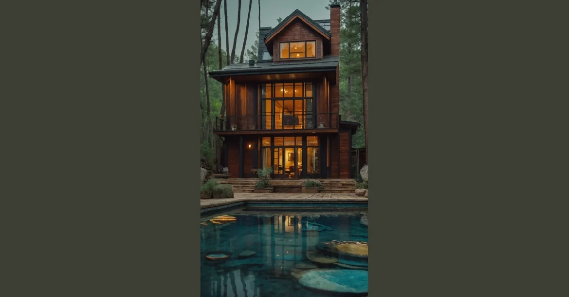Seriously, though, can we talk about that pool? It’s practically begging you to jump in and pretend you’re on some luxurious, secluded island getaway. The whole place feels both super chill and sophisticated at the same time. It’s the kind of house where you could totally picture yourself binge-watching your favorite shows, sipping hot cocoa by the fire (if it has one, which I bet it does!), or throwing the ultimate backyard party for your friends—assuming your friends also happen to be ridiculously stylish woodland creatures.