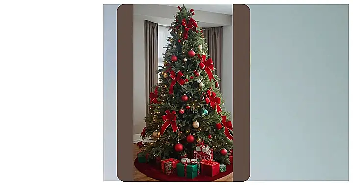 This Christmas tree is seriously decked out! It’s like a sparkly, red-and-gold explosion of festive cheer. Look at all those ornaments – shiny balls, ribbon swirls, and even some fancy bows! It’s the perfect example of how to make your tree super festive and totally eye-catching. It’s giving me major holiday vibes, and I bet opening presents under it would be even more fun!
