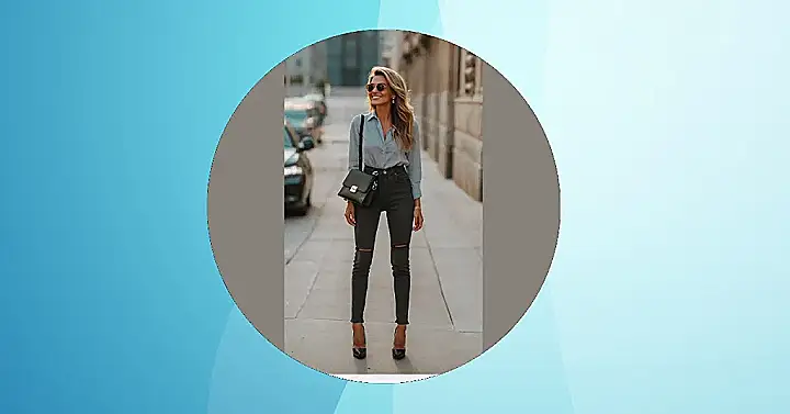 This outfit is like a secret weapon for looking effortlessly cool without even trying too hard! Imagine strolling down the street, feeling confident and comfortable in your ripped jeans and a stylish button-down shirt – it’s the perfect blend of casual and cute. The black heels add a touch of sophistication, but you could easily swap those for sneakers and still rock this look! Who needs a complicated outfit when you can look this awesome with minimal effort?