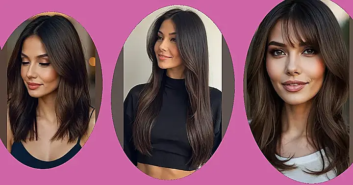 This hairstyle is seriously fabulous! Just look at those long, luscious locks cascading down like a dark chocolate waterfall. It’s the kind of hair that makes you want to run your fingers through it (don’t worry, we’re totally not judging if you do!). This style is perfect for anyone who wants to look effortlessly chic – the kind of look that says “I woke up like this,” even if you secretly spent an hour perfecting it. The long layers and face-framing fringe add a touch of mystery and sophistication, turning heads wherever you go.