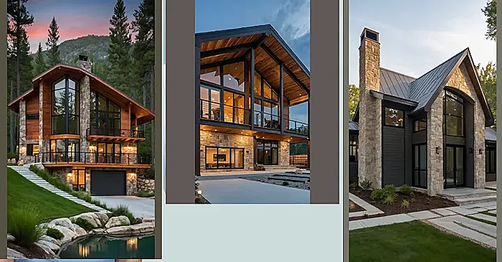 This house isn’t your grandma’s ranch! It’s got that classic ranch vibe – all low-slung and spread out – but with a serious modern makeover. Imagine a sleek, stylish ranch that decided to swap its cowboy boots for some seriously cool architect shoes. The stone looks super fancy, like it’s been on a relaxing spa day in the mountains, and those big windows? They’re totally showing off the amazing sunset views – no need for a filter, the scenery’s already picture perfect. It’s like someone took a time machine, grabbed the best parts of a traditional ranch, and added a whole bunch of modern pizzazz!