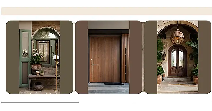 That entrance is seriously stylish! It’s like stepping into a magazine spread. Those gorgeous wooden doors are totally dreamy, and the stone steps and planters make the whole thing look super sophisticated. You wouldn’t believe how much a few plants and a cool doormat can change the look of your home entrance! It’s all about that first impression – and this one screams “Welcome home!”