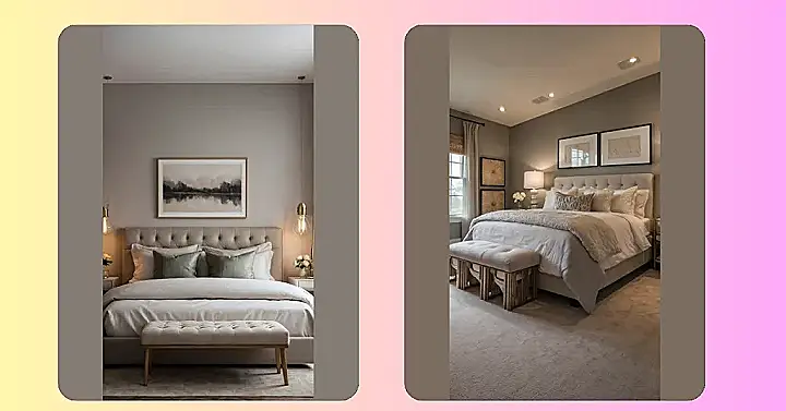 This bedroom is seriously giving off major “I just wanna curl up and read a book” vibes. The soft, neutral colours are so calming – it’s like stepping into a cloud made of beige! That comfy-looking bed, with its fluffy pillows and matching bench at the foot, is practically begging you to take a nap. Plus, those dreamy pendant lights hanging above? They’re the perfect finishing touch for a truly cozy and relaxing atmosphere. It’s basically a hug in room form!