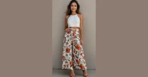 This outfit is like a secret weapon against time! Imagine walking down the street, feeling confident and stylish in your wide-legged pants and chic black top. Forget those frumpy “anti-aging” clothes you’ve seen—this look is all about embracing your inner fashion icon. It’s comfortable enough for a day of running errands (or conquering the world!), but stylish enough for a fancy dinner. Who needs a time machine when you have this killer outfit?
