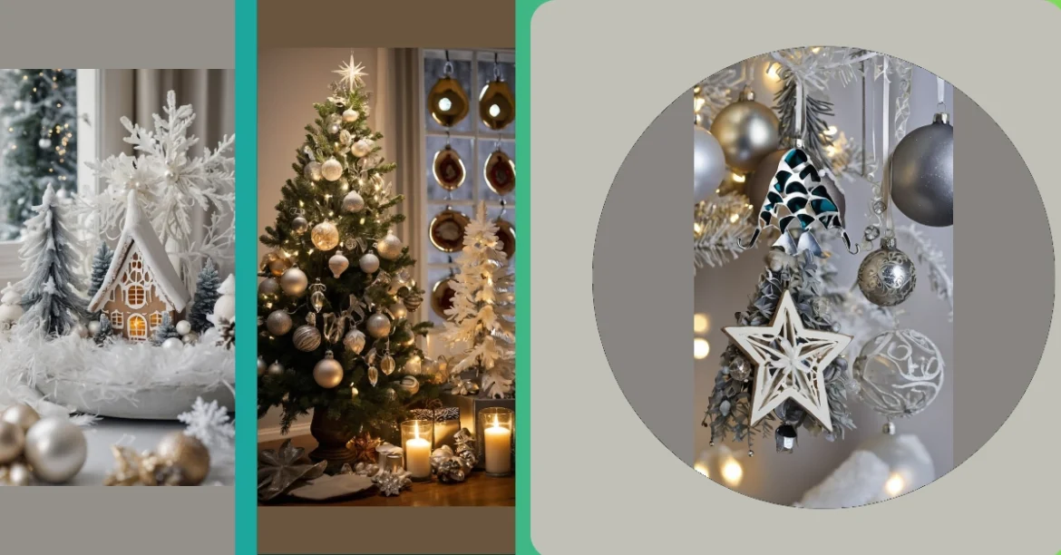 Check out this super cool image! It’s like a mini snow globe exploded onto a Christmas tree, but in the best way possible. We’ve got sparkly silver and white baubles, a gorgeous teal and silver ornament that looks like something out of a fairytale, and a big, beautiful wooden star that’s totally stealing the show. It’s all super elegant and festive, making it perfect for anyone who wants a white Christmas with a touch of magic. The image totally captures the essence of “white Christmas decor ideas,” don’t you think?