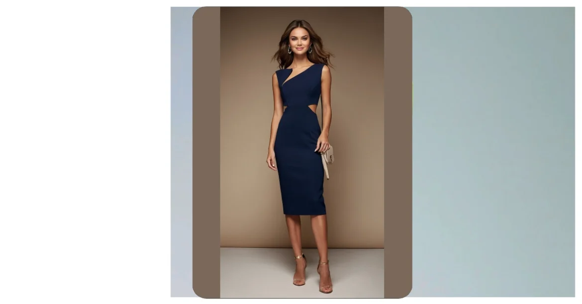 That navy dress is seriously stunning! It’s like a secret weapon against looking your age – stylish, sophisticated, and totally age-appropriate for anyone who wants to feel confident and amazing. Imagine rocking this look at a fancy dinner or a night out with friends. The cut-out detail adds a bit of fun and shows you’re not afraid to be bold. Plus, who needs a time machine when you can have a dress this chic?