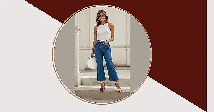This woman looks totally comfy and confident in her denim jeans! It’s like she’s saying, “I can wear these jeans anywhere, from school to hanging out with friends!” She even looks super stylish with those heels! They make her outfit pop. It’s cool to see how you can take something as simple as denim jeans and make them look so trendy.