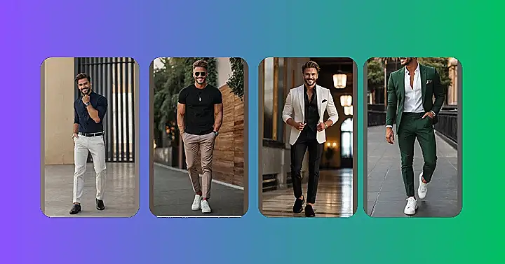 This guy is rocking the “I’m not trying too hard, but I totally am” look. He’s got that cool, casual vibe going on, and honestly, who doesn’t love a good pair of white sneakers? He’s ditching the stuffy suit for a more relaxed approach to formal wear. Think about it – a black t-shirt, some stylish khaki pants, and a killer smile – that’s a look that screams “confidence and style.” And don’t forget the sunglasses – because even a formal outfit can use a little bit of coolness! This guy is totally showing us that you can be dressed up without feeling stuffy, and that’s a winning combo for any occasion!