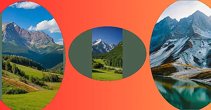 The picture shows a magnificent mountain range with snow-capped peaks that seem to kiss the sky. It’s like a scene from a nature movie, all green and blue and white. You can almost imagine a friendly bear taking a nap under those trees, or a little squirrel scampering up a tall pine, looking down at the valley below. It’s a place where you can breathe in the fresh air, feel the breeze on your face, and just be amazed by the beauty of nature.