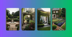 But wait, there’s more! Notice that stone wall in the foreground? It looks like it’s guarding a secret entrance to an even more amazing garden! Maybe there’s a hidden waterfall or a secret tunnel behind it. Who knows what magical surprises await! The whole thing just makes you want to explore and discover all the hidden wonders this place has to offer.