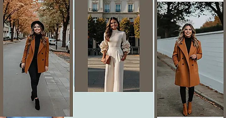 The woman in the picture looks totally confident and ready to take on fall with a smile. She’s rocking the “I’m in charge” look but still looks relaxed and approachable, like someone you’d want to be friends with. It’s like she’s saying, “Fall is my favorite season, and I’m gonna look good doing it!” Who wouldn’t want to be that person?