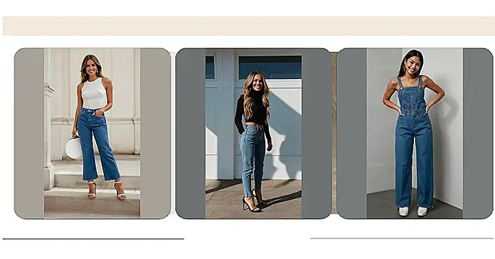 This woman looks totally comfy and confident in her denim jeans! It’s like she’s saying, “I can wear these jeans anywhere, from school to hanging out with friends!” She even looks super stylish with those heels! They make her outfit pop. It’s cool to see how you can take something as simple as denim jeans and make them look so trendy.