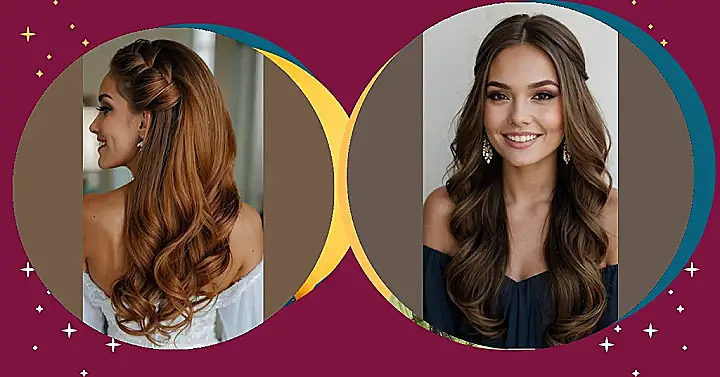 Let’s kick things off with the stunning half up half combinations. They’re the jack-of-all-trades in bridesmaid hairstyles, working wonders on straight, curly, medium length, and even short hair! There’s something about it that feels inherently glamorous—like you just stepped out of a bridal magazine (minus the dramatic price tag). You can rock it simple or full of intricate braids—the choice is yours!