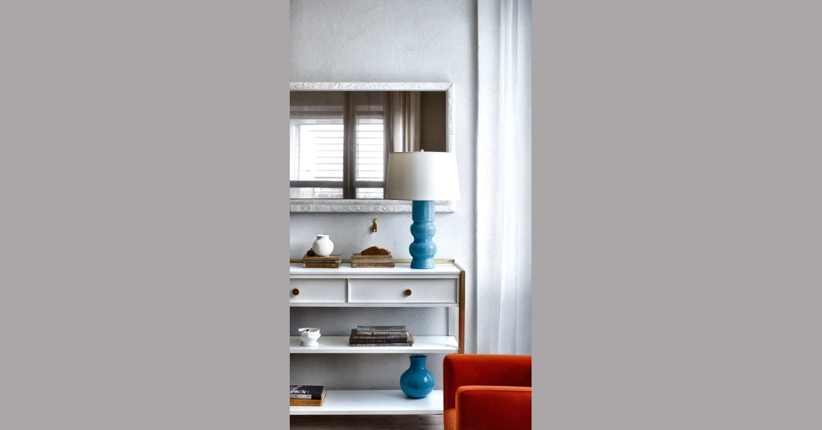 Does your room sometimes feel like it’s auditioning for a role as a beige background extra? Well, it’s time for a decorating glow-up! Take a peek at this setup, where a cool blue lamp isn’t just for seeing your homework (though it totally helps!), it’s also a major style statement. It’s like your room just decided, “You know what? I’m going to be awesome today!” Adding a vibrant piece, whether it’s a lamp, a vase, or even a super comfy orange chair like the one peeking in, can transform a corner from “meh” to “marvelous” without needing a full home reno. Plus, that sleek white console table isn’t just for looks; it’s practically a superhero for holding all your treasures, from your favorite books to that mysterious tiny white vase.