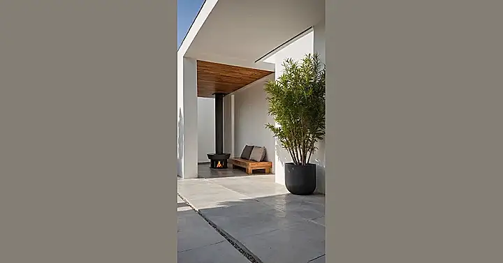 When the sun starts to dip, that awesome modern fireplace kicks in, turning this spot into the ultimate hangout. Picture this: curled up on that comfy wooden bench with its plush cushions, watching the flames dance, maybe even attempting to roast a marshmallow without setting my hair on fire. It’s the perfect escape from homework drama or, you know, just life. Who needs a sprawling backyard full of chores when your ‘home garden’ is this stylishly laid-back, offering warmth, peace, and zero expectations of digging?