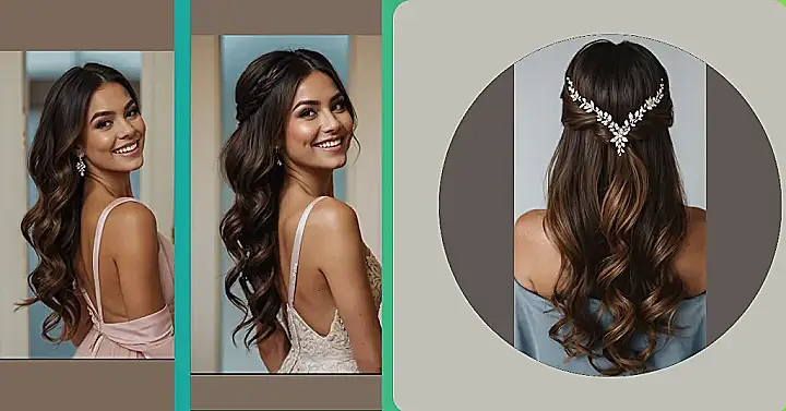 This hairstyle is like a fairy tale come to life! It’s got the perfect amount of curls, and that little sparkly headband makes the whole thing look super fancy. It’s like, a princess went to the beach and then to a wedding… and she’s totally rocking it!