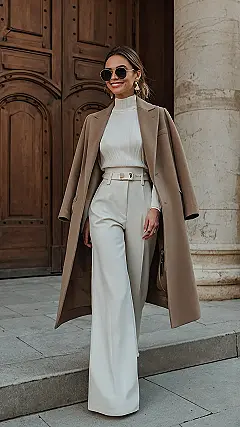 This outfit screams “I woke up like this…but with a stylist and a trust fund.” The creamy white wide-leg trousers and sophisticated camel coat are like the ultimate power move, proving that you don’t need flashy logos to make a statement. It’s the kind of look that says “I inherited my style, not my clothes,” and honestly? It’s totally aspirational. Imagine strolling down the street like this, all effortless cool and subtle wealth. Who needs diamonds when you have this level of chic?