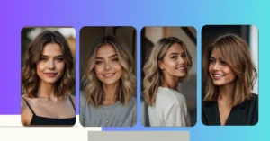 This picture shows a woman rocking a super cute shoulder-length bob! It’s the perfect “I woke up like this” hairstyle, even if it took a little help from a stylist (we won’t tell!). Her smile is as radiant as the sun, proving that a great haircut can truly brighten your day. It’s stylish, easy to manage (imagine all the time you save!), and looks fantastic whether you’re hanging with friends or going to class.