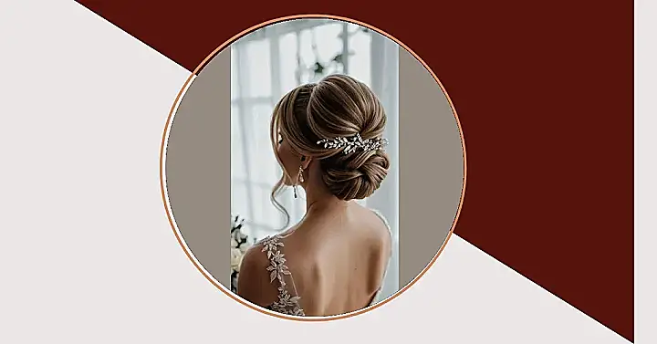 This hairstyle is so stunning, it’s practically a work of art! Imagine yourself walking down the aisle, looking like a princess with this gorgeous bridal bun. It’s all perfectly sculpted and elegant, with a sparkly hairpiece that adds just the right amount of “wow.” This isn’t just any old bun; it’s a sophisticated updo designed to perfectly complement a wedding dress. It’s the kind of hair you’d want in all your wedding photos—you know, the ones you’ll be showing your grandkids (and maybe even your great-grandkids!).