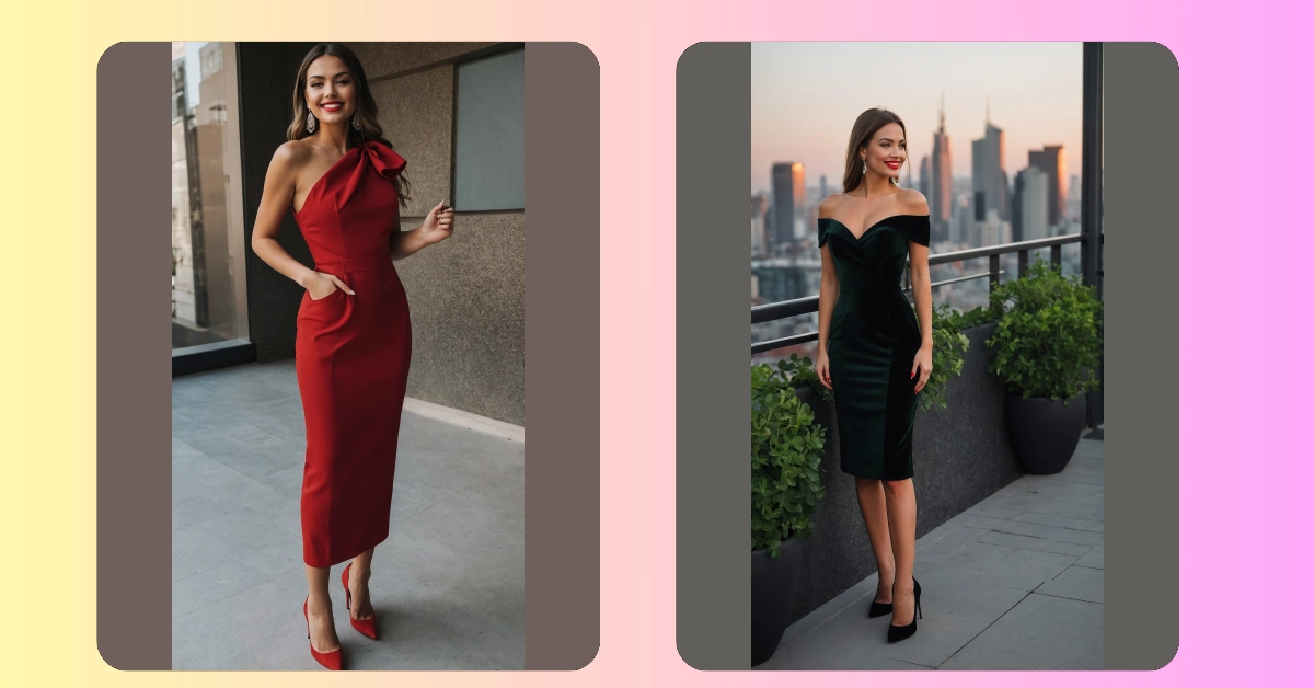 It’s pretty clear she’s not just chilling at home in this outfit, with that cool green wall and twinkling lights setting the scene! But that’s the awesome thing about red casual outfits for women – they can totally bridge the gap between “just hanging out” and “ready for a fancy-ish night.” This dress, with its comfy-looking cut (even with those heels!), shows how red can make you feel amazing and ready for anything, whether you’re out with friends or just looking to add a pop of cheerful color to your day. Plus, who doesn’t love an outfit that brightens up the room just by existing?