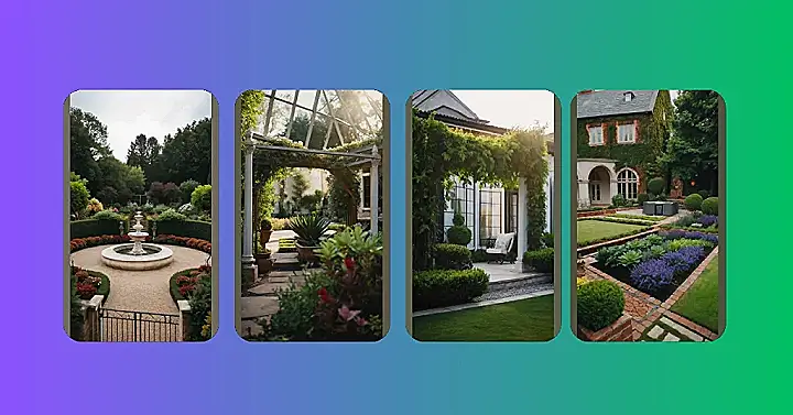This garden is like stepping into a fairytale! With its perfectly manicured bushes and a charming little gazebo, it looks like something out of a storybook. You can almost imagine a princess strolling through the pathways, maybe even taking a sip of tea in the gazebo. The fountain adds a touch of elegance, and the flowers are the perfect finishing touch. It’s the kind of garden that makes you wish you could live there forever.