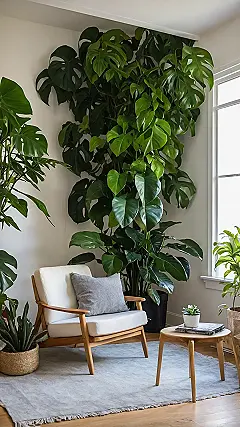 You know that feeling when your room is just… *there*? Adding some leafy pals, like the giant green superstars in this picture, can totally change the game. Suddenly, instead of just a wall, you’ve got this magnificent plant chilling, looking all dramatic and leafy. It’s like bringing a bit of the outside in, but without the mosquitoes or the awkward small talk with squirrels. These room plants are basically living decor, making your space feel way cooler and less like a bland box. Just make sure they don’t get so big they start asking for rent!