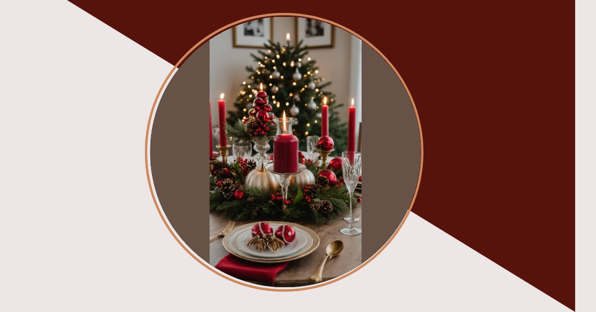 Talk about setting the mood for a holiday feast! This holiday centerpiece seriously brings its A-game, looking like it stepped right out of a glossy magazine. All those vibrant green branches, shiny red and gold ornaments, and little pinecones are basically throwing a party right there on your table. And those glowing candles? They’re not just for lighting up the room; they’re probably also doing a secret job of making everyone feel extra cozy and maybe a little less grumpy about Uncle Steve’s dad jokes. It’s so pretty, you almost don’t want to eat dinner and mess up the vibe!