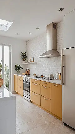 And it’s not just the yellow giving us happy brain chemicals! Check out that awesome white brick wall adding cool texture without being stuffy, and those little green plants making the whole place feel fresh and alive. Plus, with all that natural light pouring in from the skylight and big door, you’d never have a gloomy cooking day here – unless you *really* messed up the cookies. It’s a kitchen designed to make you feel good, whether you’re whipping up a masterpiece or just raiding the fridge for a snack. It proves that creating a space that literally sparks joy isn’t just for fancy magazines; it’s totally achievable and super fun!