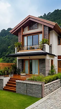 If you’re looking at modern house plans and dreaming of an upgrade, check this out! This place is so fancy, it probably has a robot that folds your laundry. Seriously though, the mix of wood and stone is like nature met a spaceship, and they decided to build a house together. It’s got that “I’m sophisticated, but also super comfy” vibe, which is exactly what you need after a long day of, you know, homework.