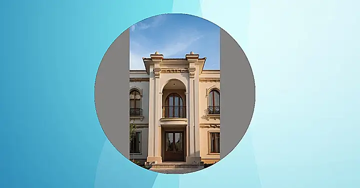 So, this villa is giving major “I’m rich, but also I like a good throwback” vibes! It’s got those big, fancy pillars like something out of ancient Rome, but they’re all sleek and white like someone just gave them a fresh coat of paint. The balcony is rocking some seriously cool metalwork. You can almost imagine a dramatic character gazing out from there, plotting their next move… or maybe just ordering pizza!