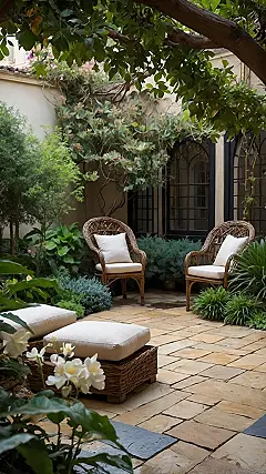Forget scrolling endlessly or debating what to watch, because this Italian courtyard garden is basically screaming “maximum chill detected!” Seriously, those wicker chairs look so inviting you might accidentally fall asleep just looking at the picture. All the green plants and climbing vines make it feel like a super secret hideout, perfect for escaping homework or just pretending you’re on a cool vacation somewhere far away, maybe plotting your next big idea or just enjoying the quiet.