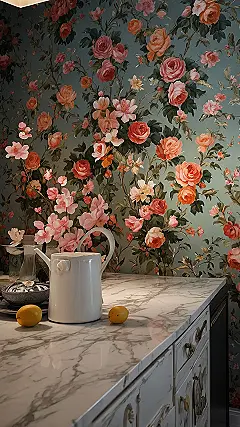 This wild floral wallpaper looks like it jumped straight out of a secret garden or maybe your most stylish relative’s dining room. Now, imagine making *that* the background on your iOS device! It’s definitely not the basic geometric pattern everyone else has; it’s a full-on explosion of pink and orange roses right behind your apps. Picking a wallpaper like this is basically giving your phone a tiny, fancy makeover, maybe even making it feel like you’re unlocking a tiny piece of art every time you check your notifications. Plus, you could pretend those little lemons on the counter are rolling around your screen.