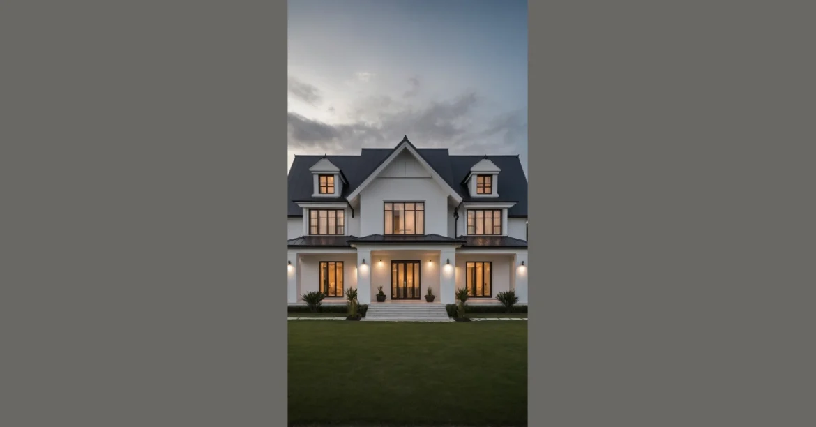 This house isn’t just a house; it’s practically a celebrity! With its crisp white walls and fancy black roof, it looks like it just stepped off the pages of a “Best Modern Homes” magazine. I bet its Wi-Fi signal is strong everywhere, even in the super cool rooms with all those glowing windows. It’s so perfectly put together, you almost expect it to wink at you and whisper, “My smart thermostat is smarter than yours!”