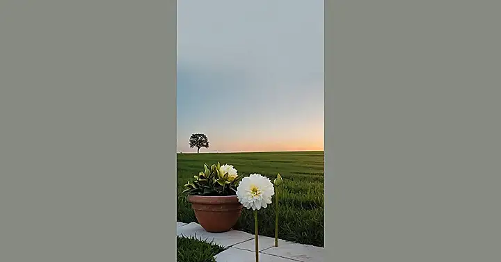 This picture is like a breath of fresh air – literally! Imagine setting your phone down on a quiet patio as the sun dips below the horizon. The soft glow paints the sky with pastel hues, while a gentle breeze whispers through the field of green. The flowers in the foreground are all about peaceful energy, like a reminder to take a moment to breathe and enjoy the beauty of the world. This would totally be the perfect lockscreen for anyone who wants to feel relaxed and grounded, no matter how chaotic the day gets.