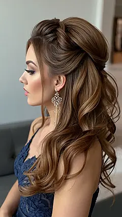 Being a bridesmaid can be stressful enough without having to worry about complicated hair, right? The style in the photo is a total win! It looks like someone took a section of hair and did a quick twist or bun in the back, then let the rest hang down in pretty waves. Adding a sparkly headband or clip makes it look extra fancy without needing a million bobby pins or spending hours in a salon chair.