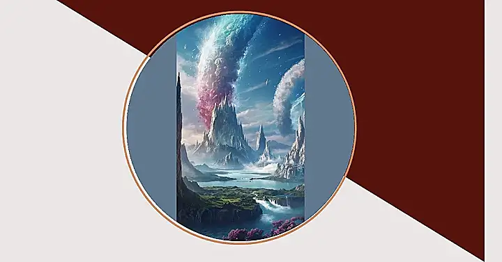 Seriously, this would make an amazing background on your laptop or tablet. You could stare at it for hours and invent stories about the lone adventurer standing there. What’s their quest? Are they headed towards the glowing beam? Are those weird pointy mountains hiding magical creatures? Maybe it’s a secret portal to another even more fantastical world. This image is a total brain-teaser for imagining fun fantasy worlds!