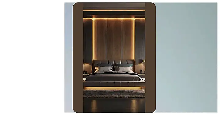 That lighting situation is seriously on point. Instead of boring old lamps, they’ve got these cool little light-up cubbies. It’s almost like they’re saying, “Hey, you deserve a fancy spot for your phone and snacks!” Plus, the whole setup is so sleek and modern, it would definitely impress your friends – even the ones who are always bragging about their “aesthetic” room makeovers. Score!