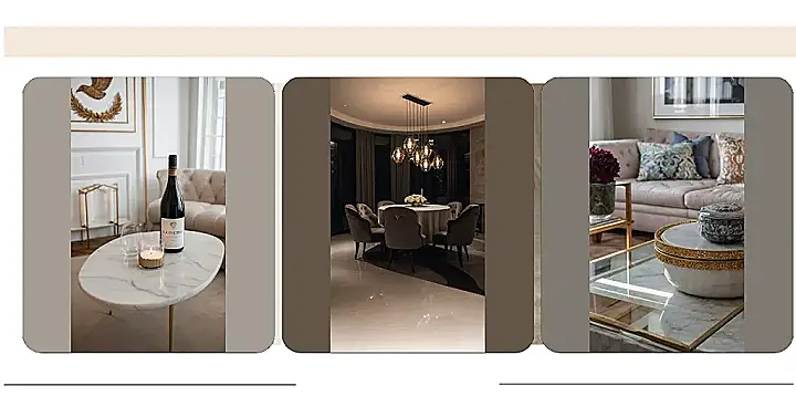 That marble coffee table is so fancy, it’s practically begging for a bottle of wine and a candle to make it feel like a spa day. It’s a good thing the table is oval-shaped too, because that bottle of wine looks like it’s got some serious stories to tell, and you’re gonna need a lot of space to hear ’em all! You could put your feet up on the couch behind it, and get comfy. Maybe just a little too comfy… because let’s be honest, sometimes the best decor is just a little bit of relaxation!