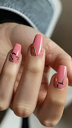 These simple acrylic nails are like that one friend who always knows how to dress up without looking like they tried too hard. That soft pink color is so cute and the gold accents are like the perfect amount of glitter on a Friday night. You could totally rock these at school and then head straight to a party – talk about multitasking!