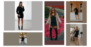 Now, the keyword is all about ‘long gown design’, and honestly, this dress is definitely *not* dragging on the floor! It’s more like the super stylish, ready-for-anything shorter cousin. But seeing such a cool outfit gets your creative gears turning about *all* sorts of fashion ideas. It makes you think, “What if this skirt kept going and going?” or “How would this amazing neckline look on a full-length gown?” Designing dresses, whether they’re short and flirty like this one or dramatic long gowns, is all about dreaming up cool looks.
