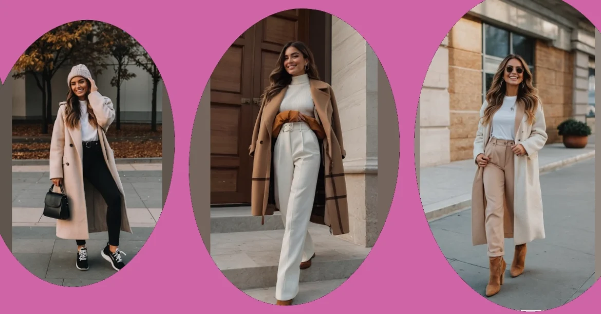 This outfit screams “Fall is here!” with its warm colors and comfy vibes. Imagine yourself strolling through crisp autumn air, the leaves crunching under your feet. This look is perfect for a day out with friends, a trip to the pumpkin patch, or even a cozy evening by the fireplace. The white top and beige pants are a classic combination that’s always on-trend. And the long coat? It’s like a warm hug for your body, keeping you cozy and stylish even when the temperatures drop. You’ll definitely be turning heads in this outfit!