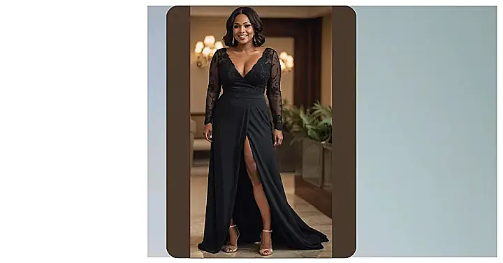 Getting ready for a wedding can be a total fashion mystery, especially if you’re a mom trying to find that perfect balance of chic and ‘I can still bust a move on the dance floor.’ But check out this stunning dress! With its gorgeous lace and flowing long sleeves, it’s basically saying, “Yeah, I raised a human, and I still look this fabulous.” It’s sophisticated enough for all those formal photos, but doesn’t scream “trying too hard,” which is every mom’s secret style goal, right? You just know she’s secretly hoping someone asks if she’s the bride’s cooler, more glamorous older sister.