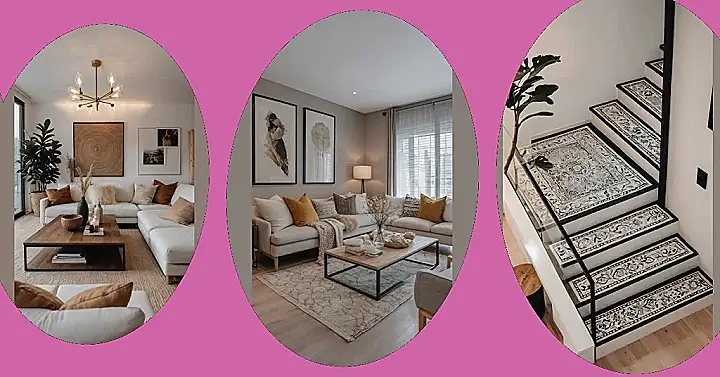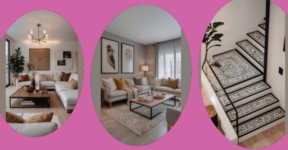 Honestly, this staircase is giving off major ‘I’m chic, but I’m also really good at making your house feel chill’ vibes. That massive green plant isn’t just there for decoration; it’s probably breathing extra oxygen to help you get up all those steps without getting winded. And check out the glass railing – super modern, but also handy for peeking down to see if your sibling stole the last snack. It’s the kind of spot where even doing chores like vacuuming the stairs feels less like a chore and more like a scenic tour through your surprisingly stylish Nordic-inspired home. Plus, those patterns? They’re practically begging you to take a cool photo for your Insta feed.