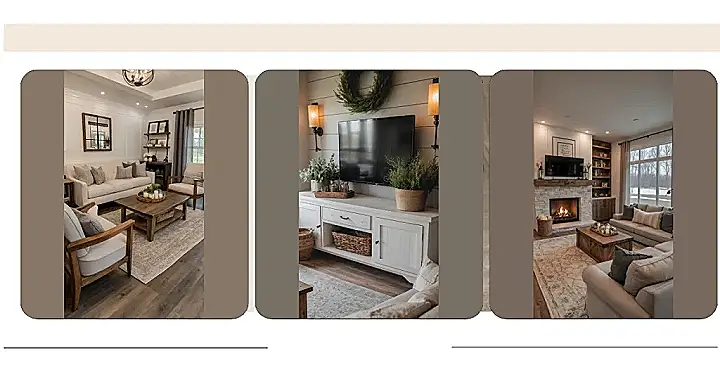 Then there’s that squishy sectional sofa by the crackling fireplace, practically begging you to cancel all your plans and just curl up with a good book (or, let’s be real, scroll through TikTok). The chunky stone fireplace gives off all those warm, classic farmhouse vibes, making you forget you’re probably in a super fancy, modern home. This look perfectly mixes cozy with cool, making it feel like your house is always ready for a pajama party, but like, a really stylish one. Forget homework; I’d be perfecting my s’mores technique here!